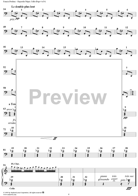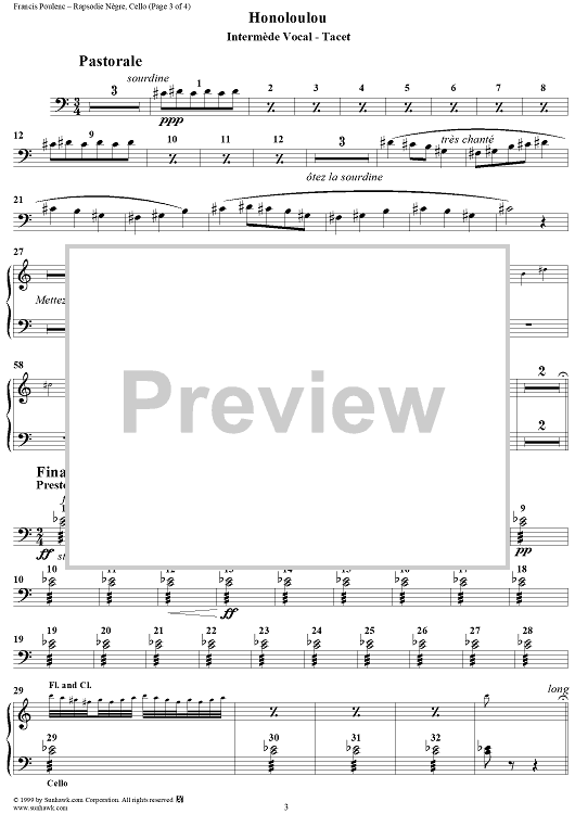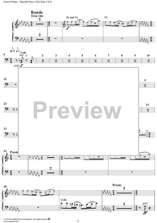 Digital Sheet Music for Rapsodie Nègre - Cello by Francis Poulenc scored for Voice/Flute/Clarinet/Strings/Piano; id:269712
