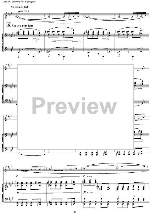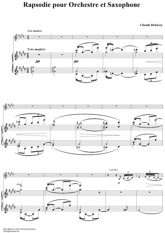 "Rapsodie pour Orchestre et Saxophone - Piano Score" Sheet Music by Claude Debussy