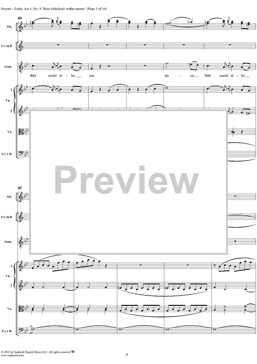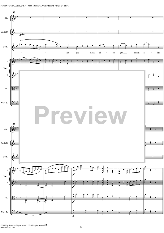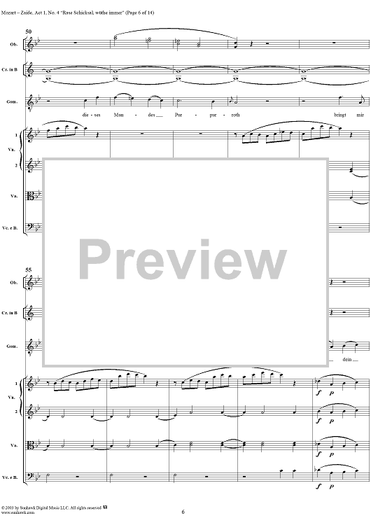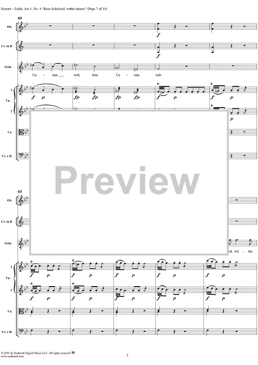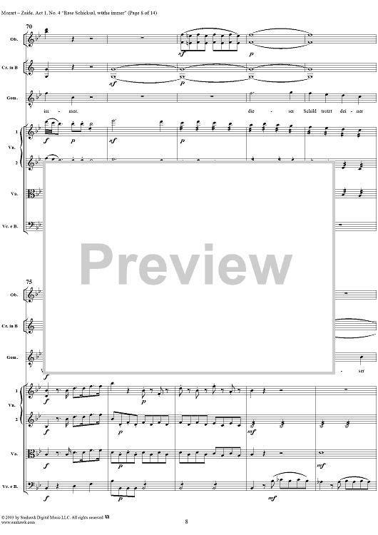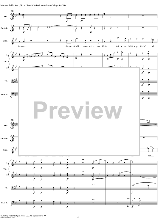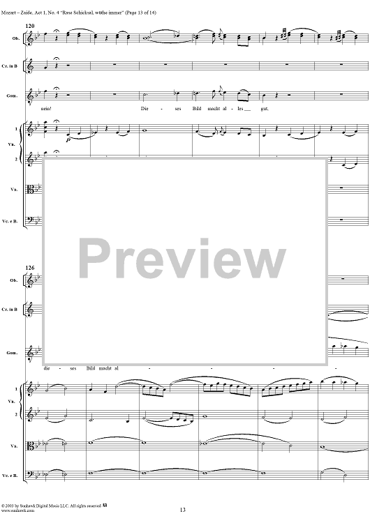 Digital Sheet Music for "Rase, Schicksal, wüte immer", No. 4 from "Zaide", Act 1, K336b (K344) - Full Score by Wolfgang Amadeus Mozart scored for Voice and Orchestra; id:291670