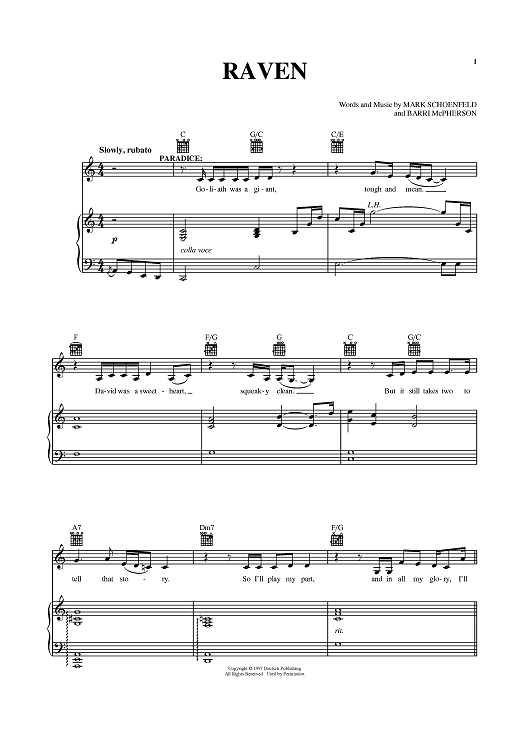 Digital Sheet Music for Raven by Barri McPherson, Mark Schoenfeld scored for Piano/Vocal/Chords; id:390697