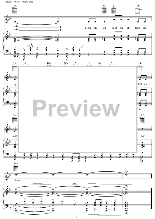Digital Sheet Music for Rawhide by Dimitri Tiomkin, Ned Washington, Frankie Laine, The Blues Brothers scored for Piano/Vocal/Chords; id:119964