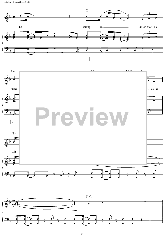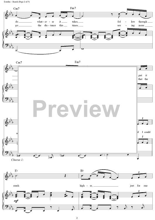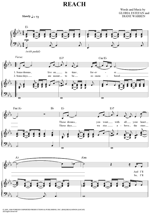 Digital Sheet Music for Reach by Diane Warren, Gloria Estefan scored for Piano/Vocal/Chords; id:119899