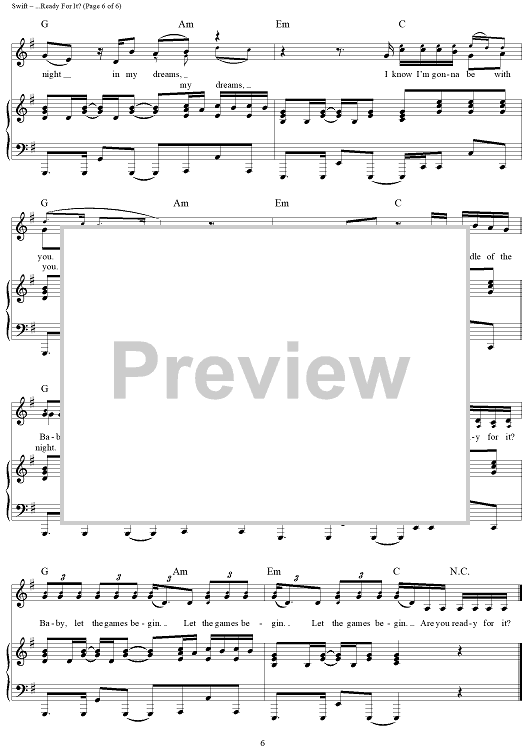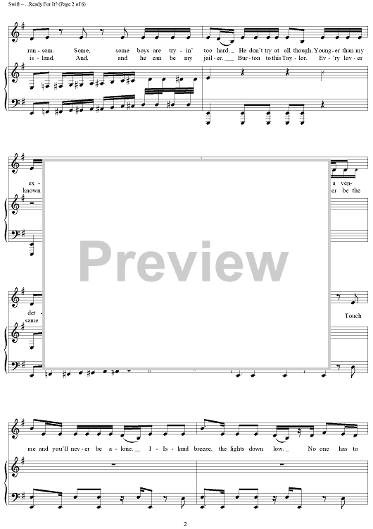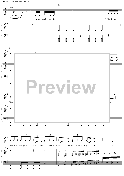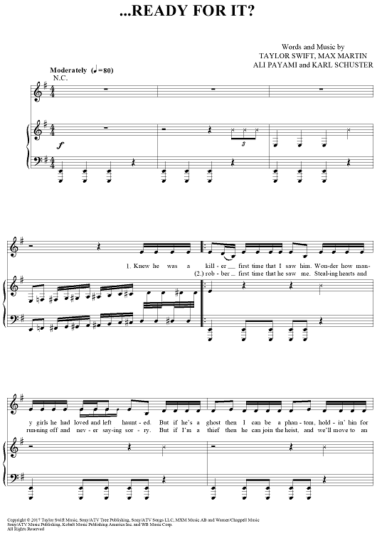 Digital Sheet Music for ...Ready For It? by Max Martin, Taylor Swift, Ali Payami, Karl Schuster scored for Piano/Vocal/Chords; id:465596