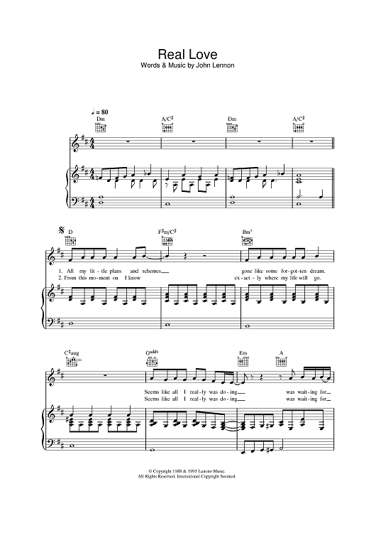 Digital Sheet Music for Real Love by John Lennon scored for Piano/Vocal/Chords; id:389914