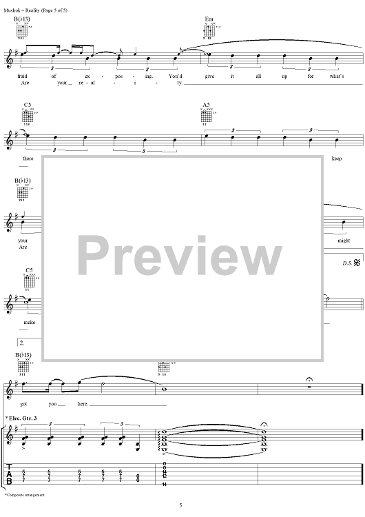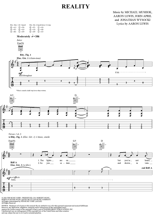 Digital Sheet Music for Reality by Aaron Lewis, Michael Mushok, Jonathan Wysocki, John April, Staind scored for Guitar Tab/Vocal; id:297776