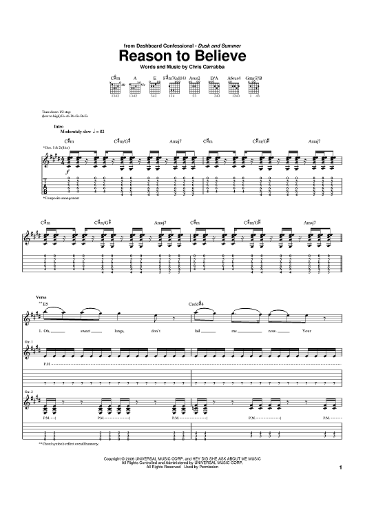 Digital Sheet Music for Reason To Believe by Chris Carrabba, Dashboard Confessional scored for Guitar Tab; id:397597