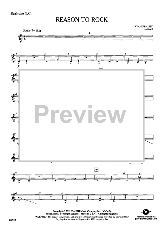 Digital Sheet Music for Reason To Rock - Baritone TC by Ryan Fraley scored for Concert Band; id:438940