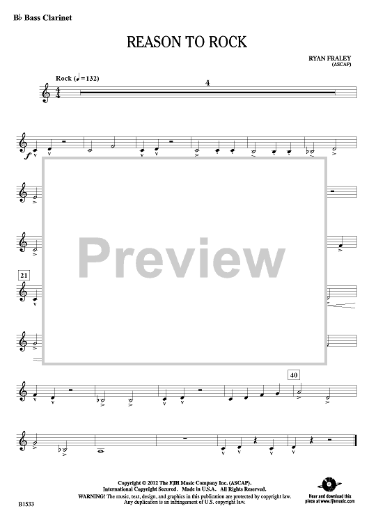 "Reason To Rock - Bb Bass Clarinet" Sheet Music by Ryan Fraley