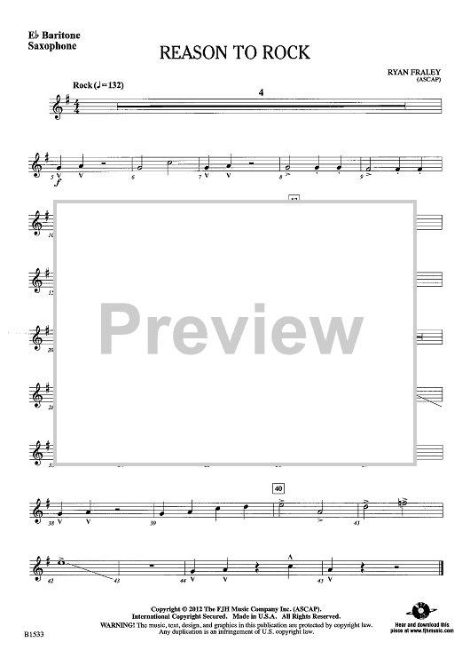 Digital Sheet Music for Reason To Rock - Eb Baritone Sax by Ryan Fraley scored for Concert Band; id:438935