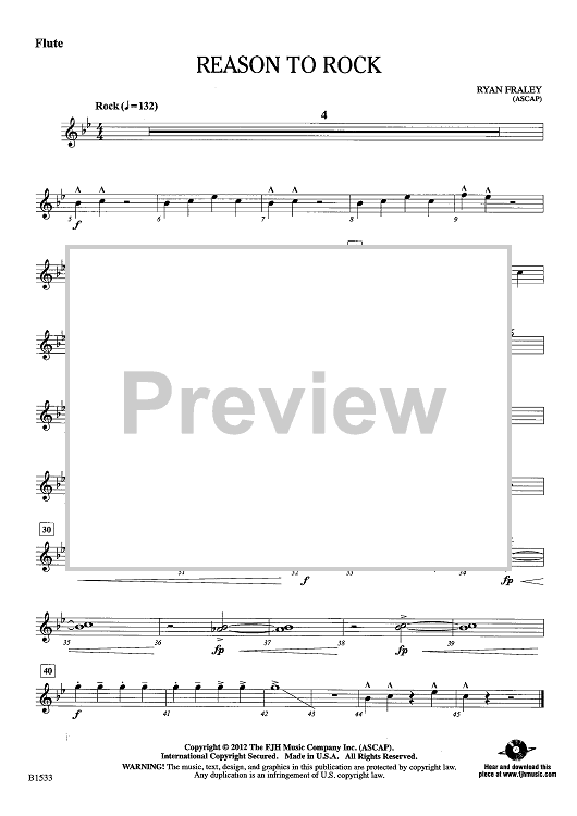 Digital Sheet Music for Reason To Rock - Flute by Ryan Fraley scored for Concert Band; id:438928