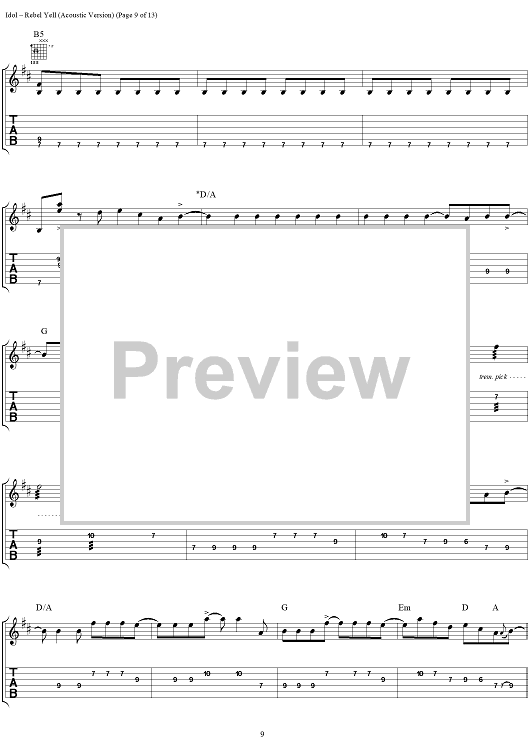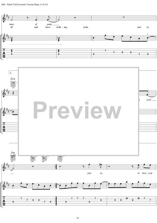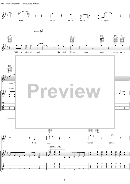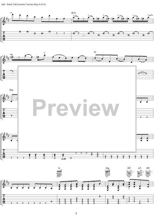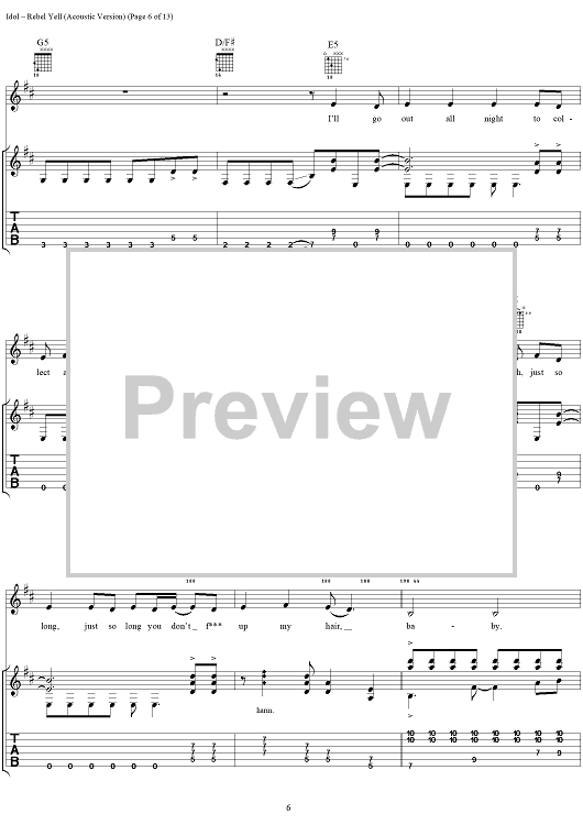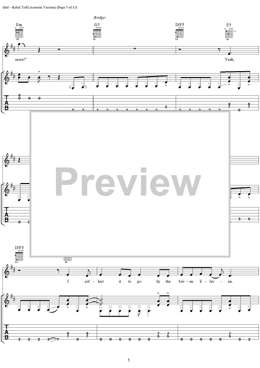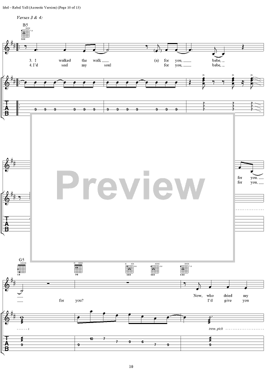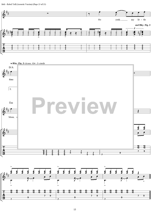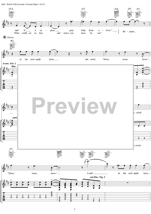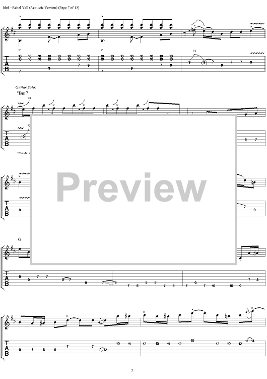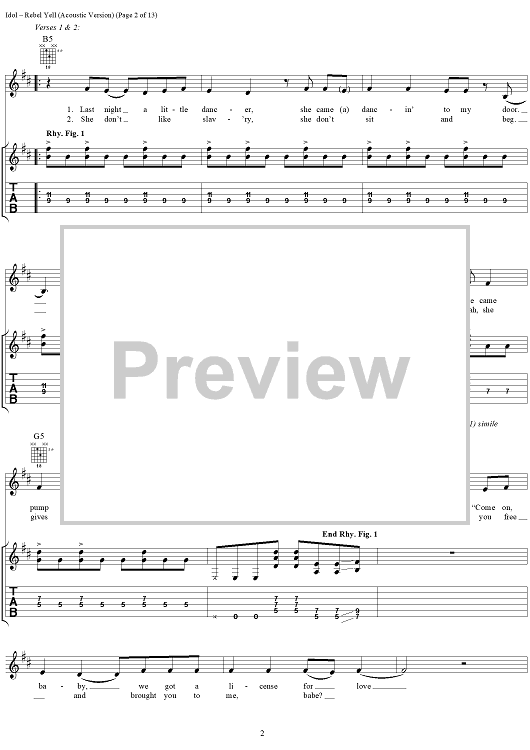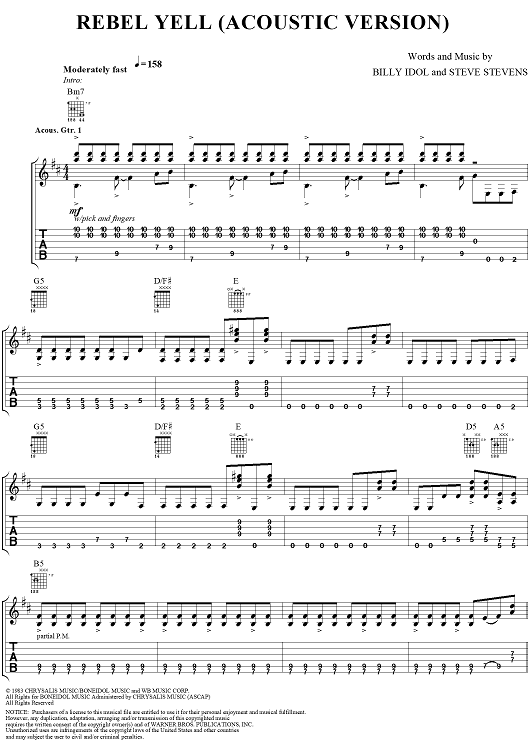 Digital Sheet Music for Rebel Yell (Acoustic Version) by Billy Idol, Steve Stevens scored for Guitar Tab/Vocal; id:287798