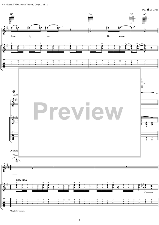 "Rebel Yell (Acoustic Version)" Sheet Music by Billy Idol