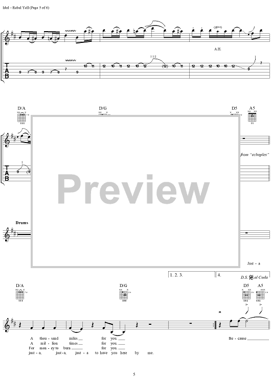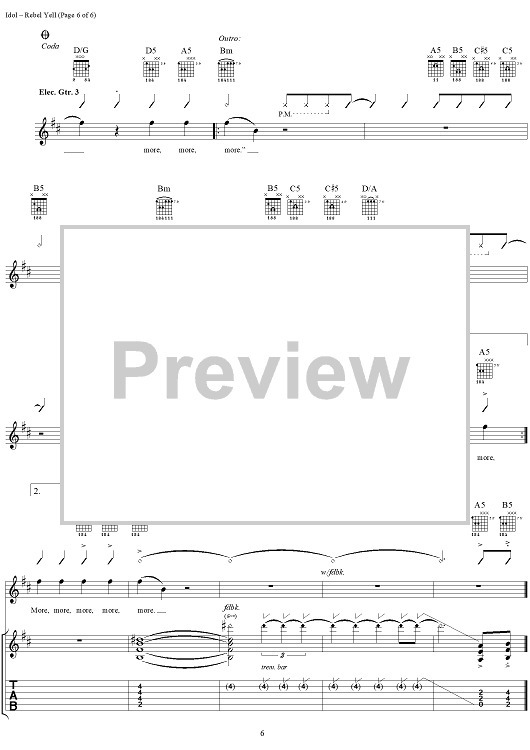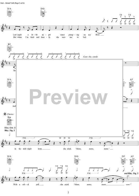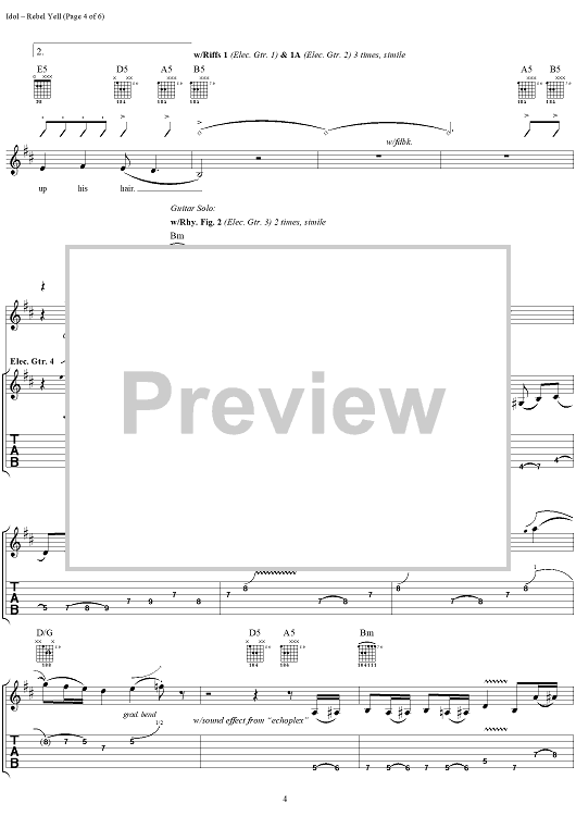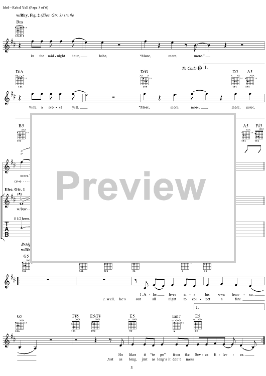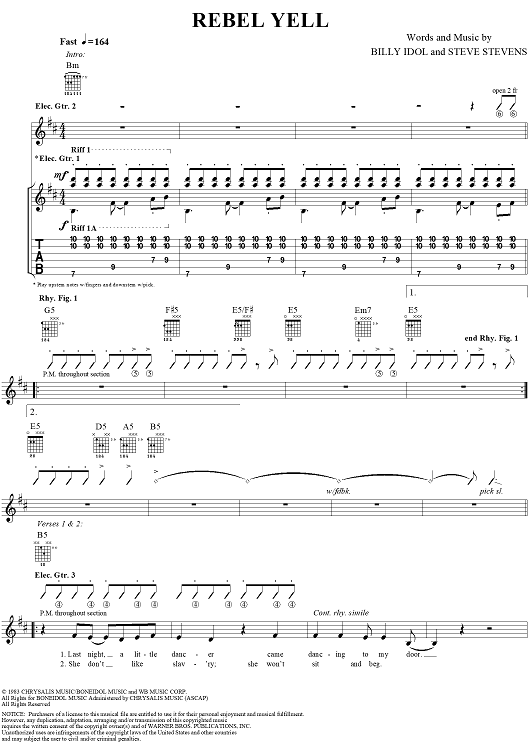 Digital Sheet Music for Rebel Yell by Billy Idol, Steve Stevens scored for Guitar Tab/Vocal; id:287803