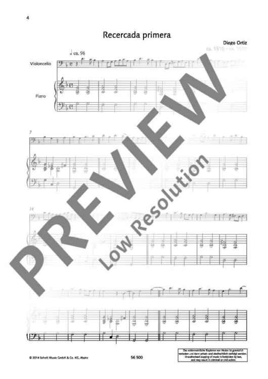 Digital Sheet Music for Recercada primera by Diego Ortiz scored for Cello, Piano And Basso; id:489379