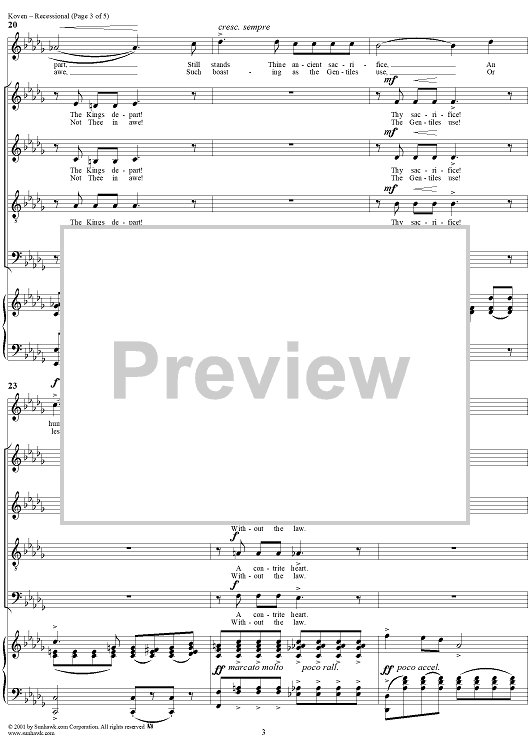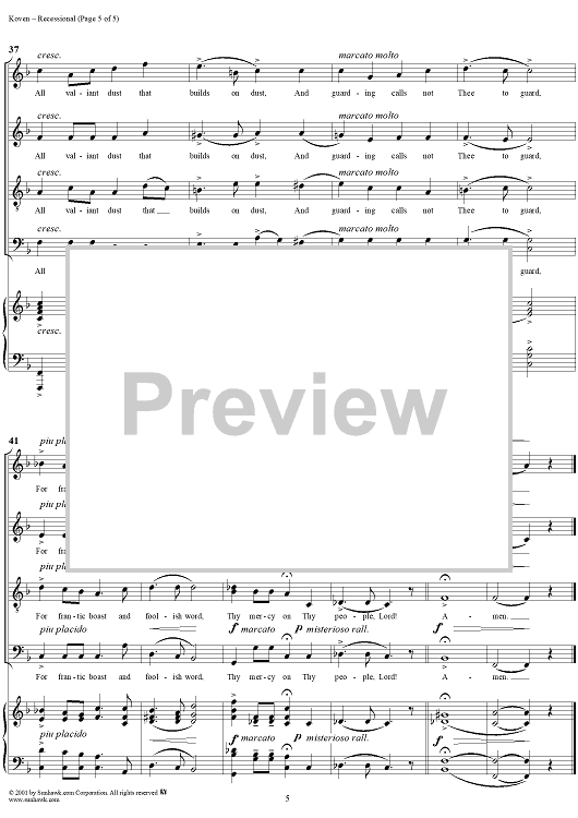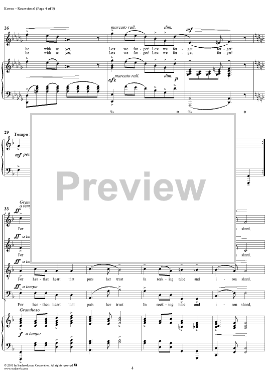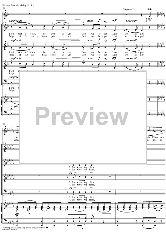 Digital Sheet Music for Recessional by Rudyard Kipling, Reginald DeKoven scored for Soprano/SATB/Piano; id:250493