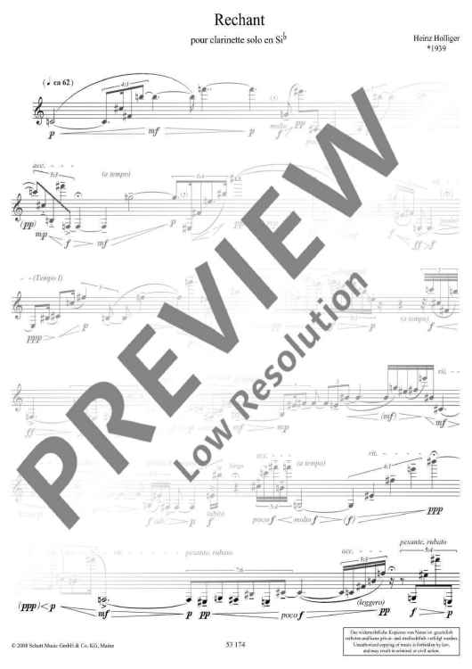 Digital Sheet Music for Rechant by Heinz Holliger scored for Clarinet In Bb; id:477756