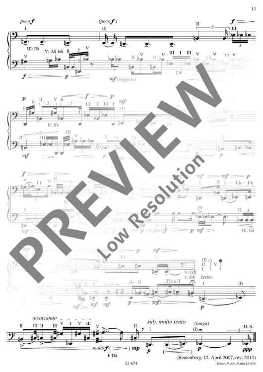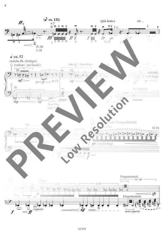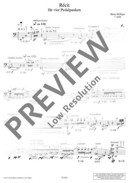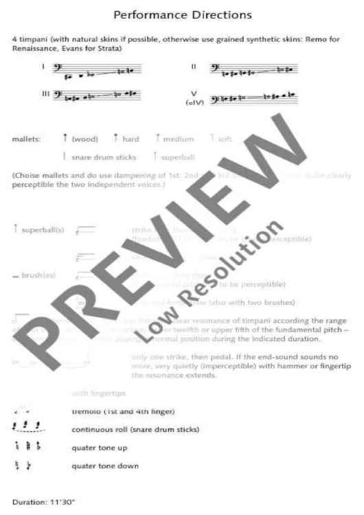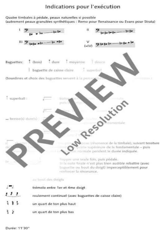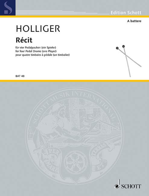 Written as a compulsory piece for this year's international Commande du Concours international de timbales de Lyon, Holliger explores all sound and pitch combinations that can be realized by a player on a set of modern pedal drums, supported by the use of the human voice.
