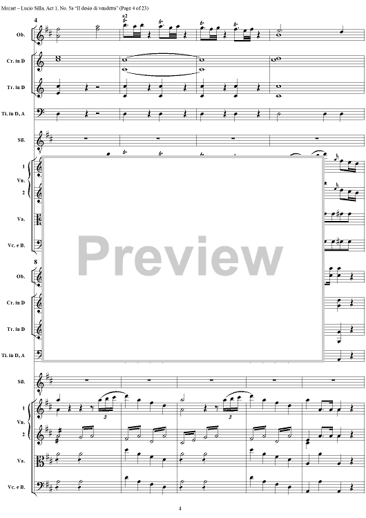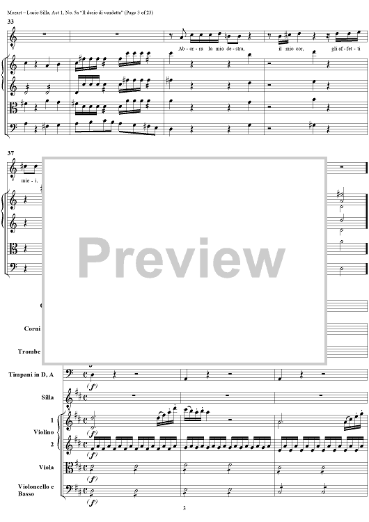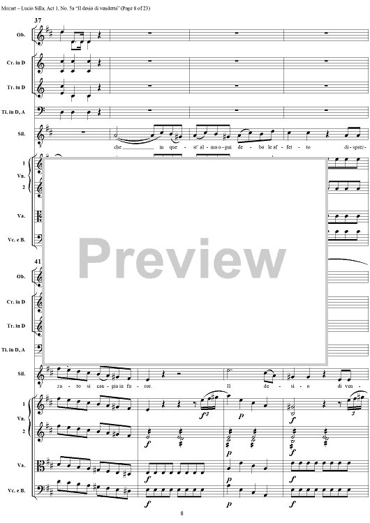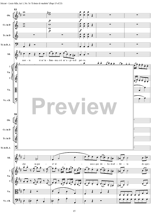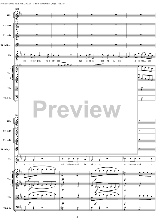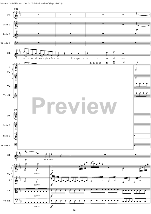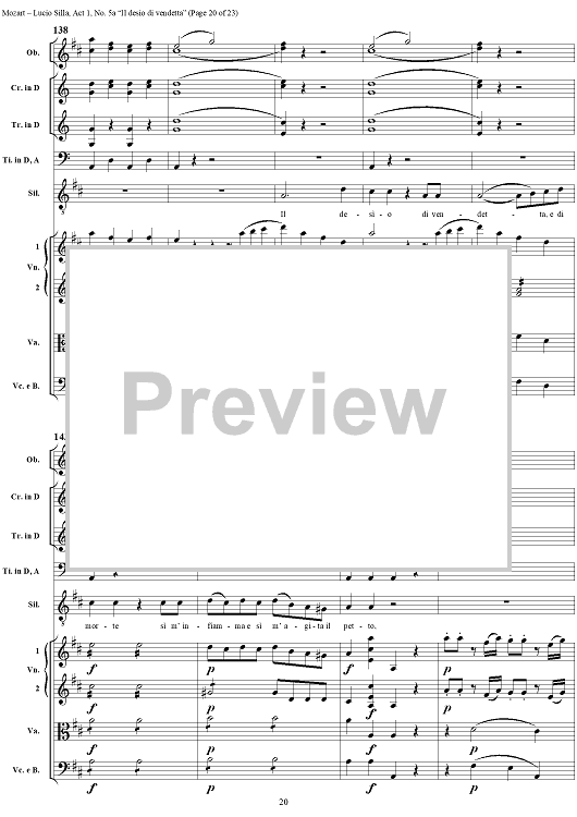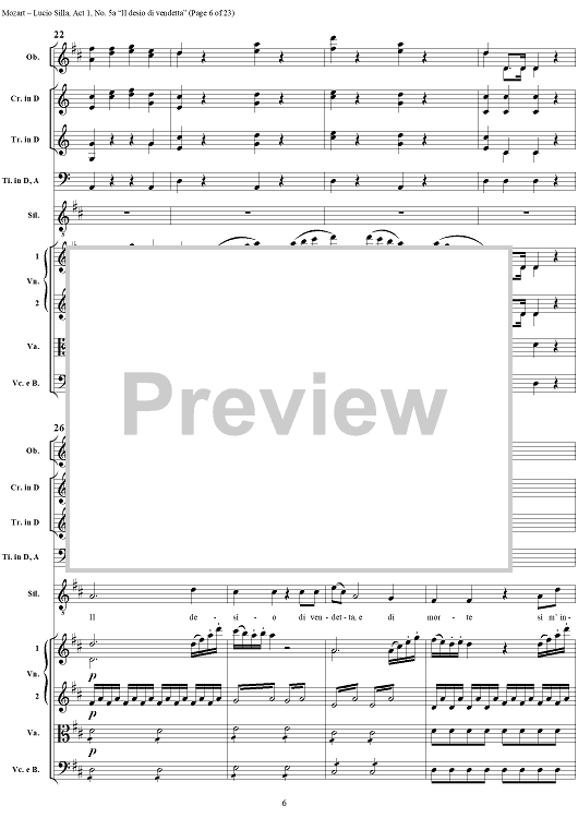 Digital Sheet Music for Recitative and Aria: Il desio di vendetta, No. 5 from "Lucio Silla", Act 1 - Full Score by Wolfgang Amadeus Mozart scored for Soli/SATB/Orchestra; id:291291