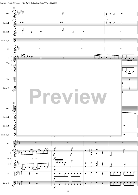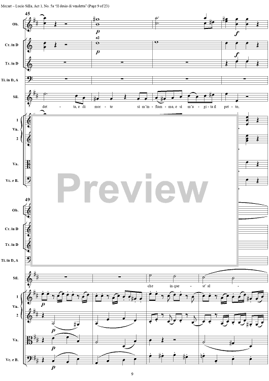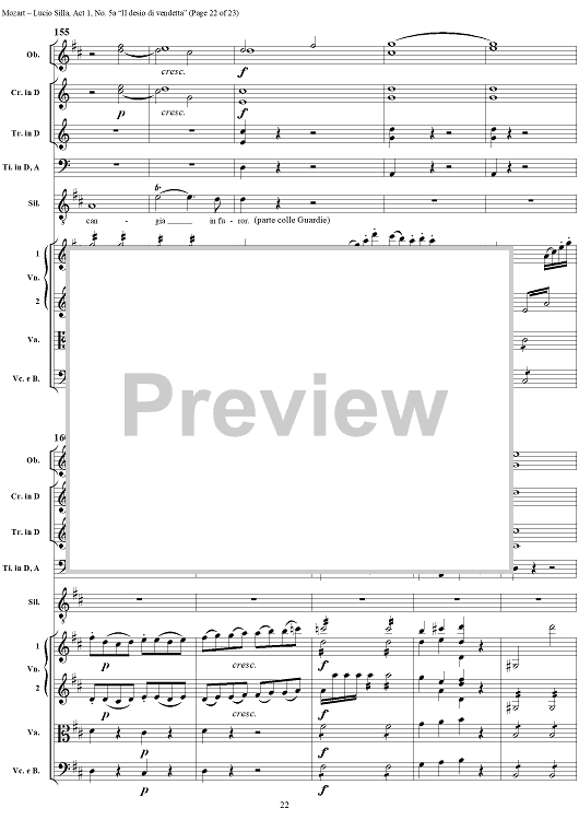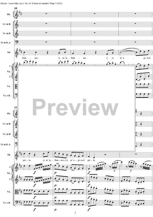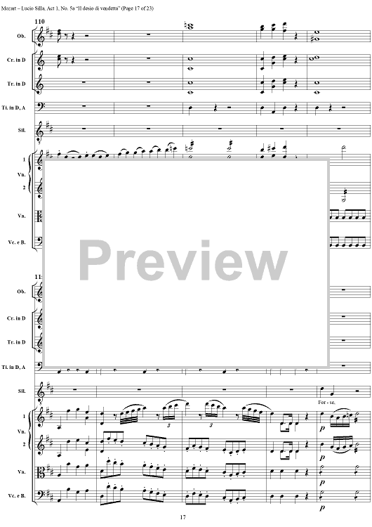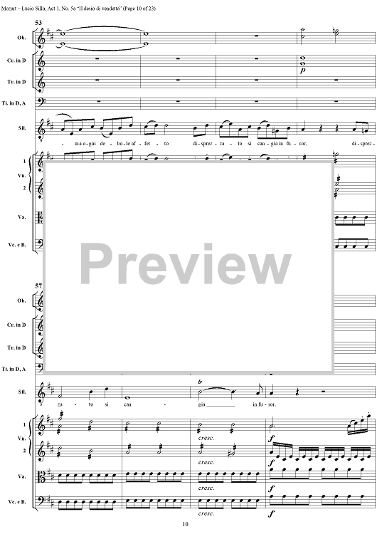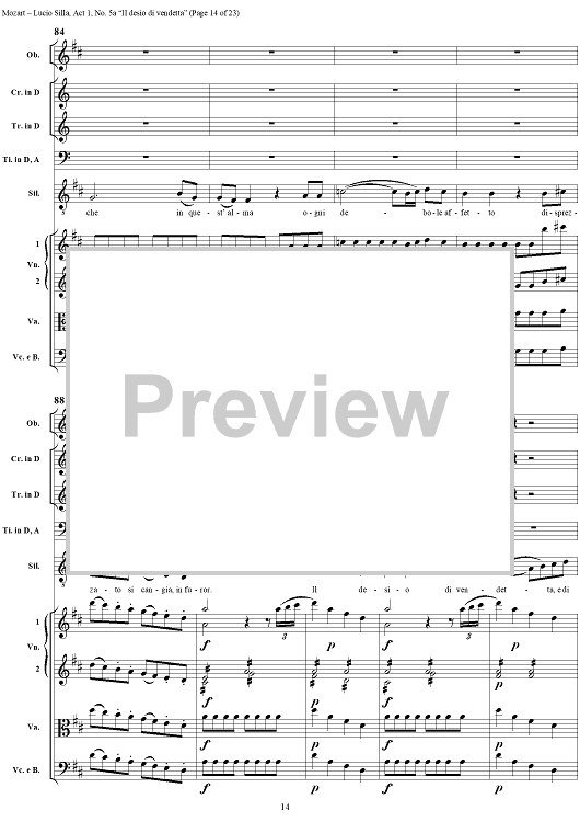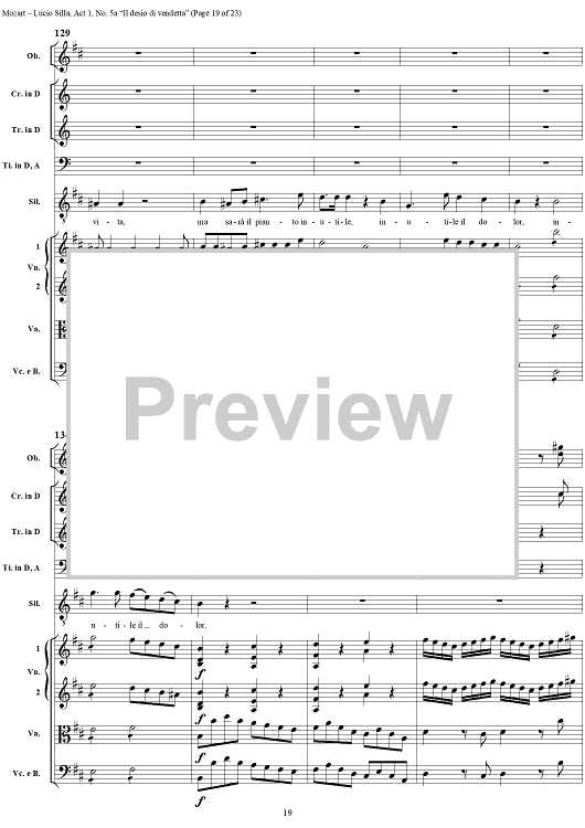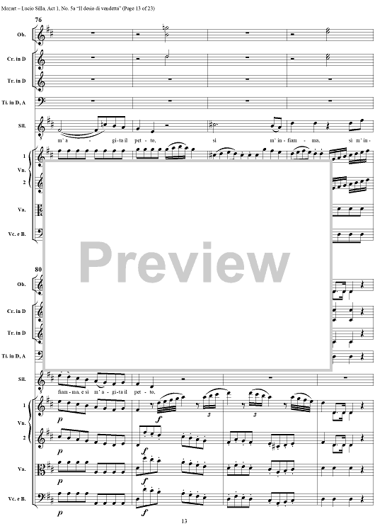 Digital Sheet Music for Recitative and Aria: Il desio di vendetta, No. 5 from "Lucio Silla", Act 1 - Full Score by Wolfgang Amadeus Mozart scored for Soli/SATB/Orchestra; id:291291