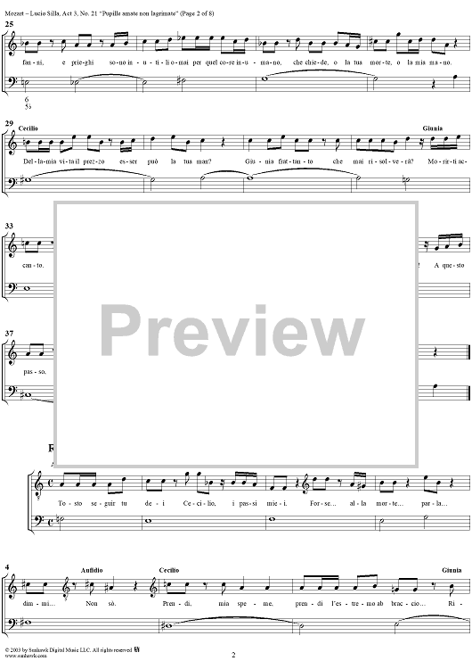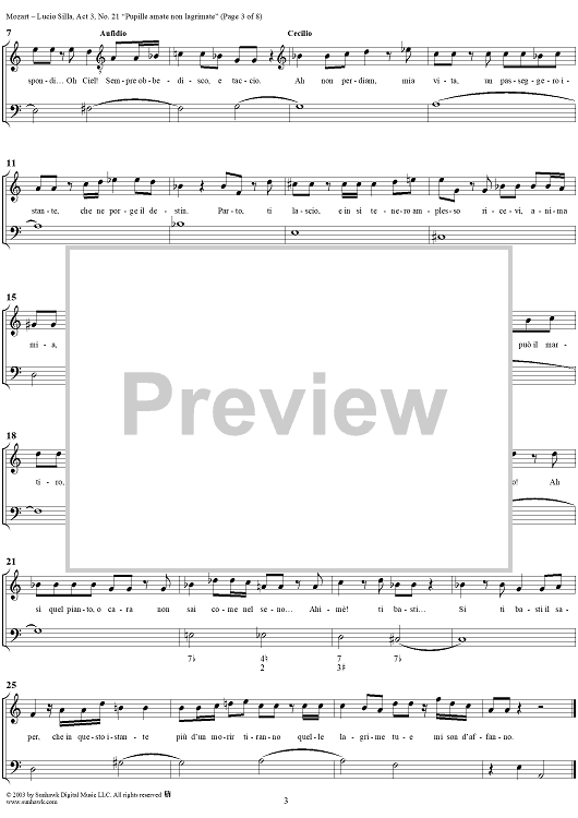 Digital Sheet Music for Recitative and Aria: Pupille amate non lagrimate, No. 21 from "Lucio Silla", Act 3 - Full Score by Wolfgang Amadeus Mozart scored for Mezzo-soprano/Violin/Viola/Cello; id:291356