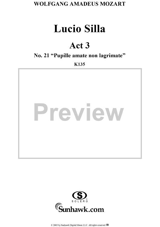 "Recitative and Aria: Pupille amate non lagrimate, No. 21 from "Lucio Silla", Act 3 - Full Score" Sheet Music by Wolfgang Amadeus Mozart