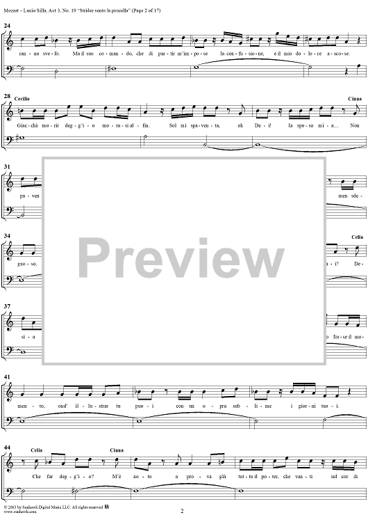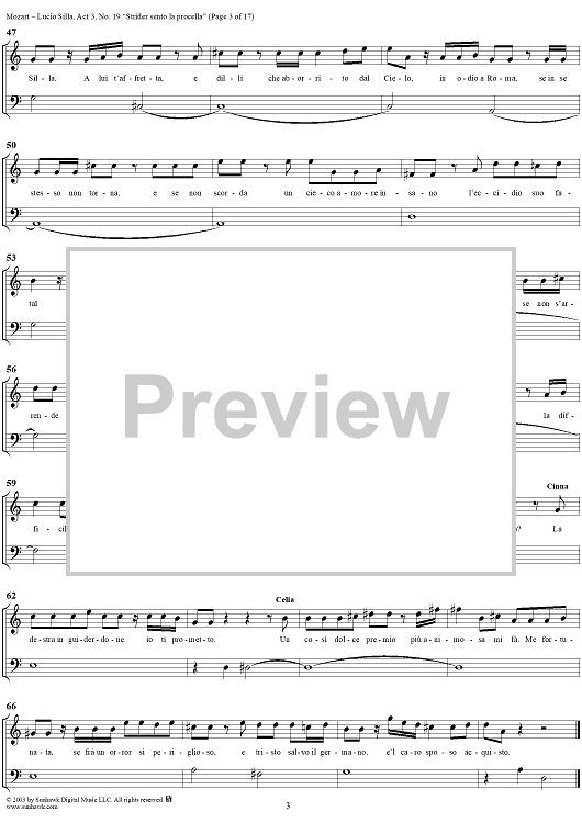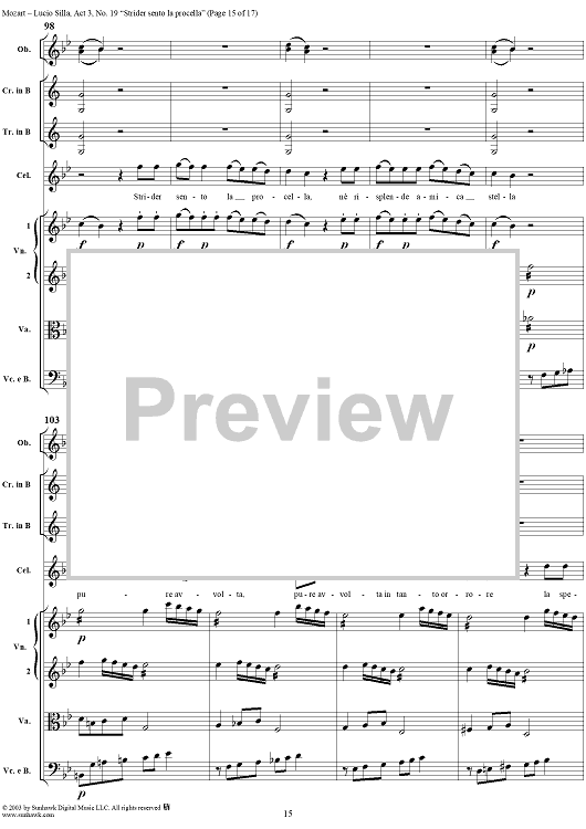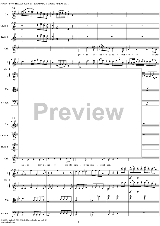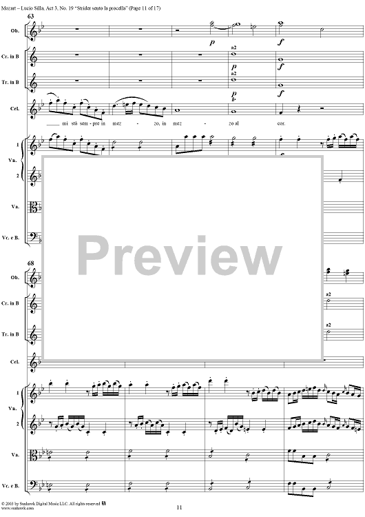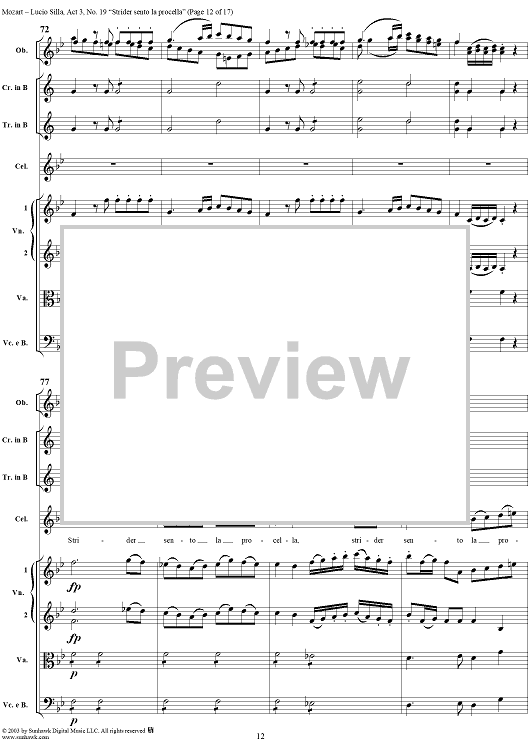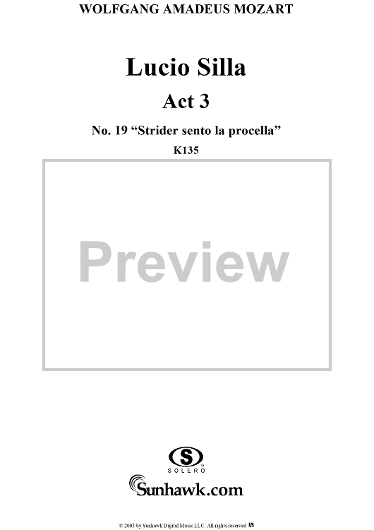 Digital Sheet Music for Recitative and Aria: Strider sento la procella, No. 19 from "Lucio Silla", Act 3 - Full Score by Wolfgang Amadeus Mozart scored for Orchestra; id:291354