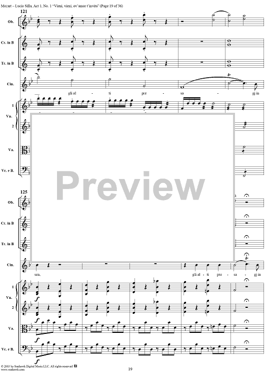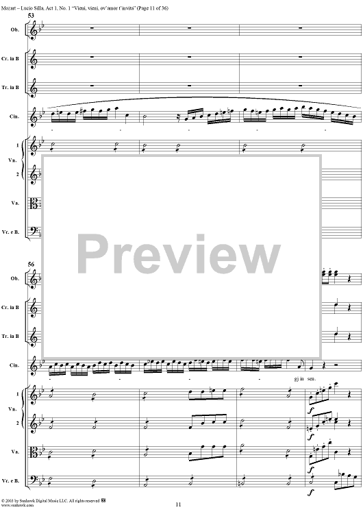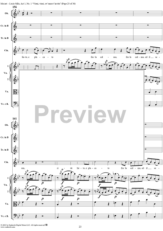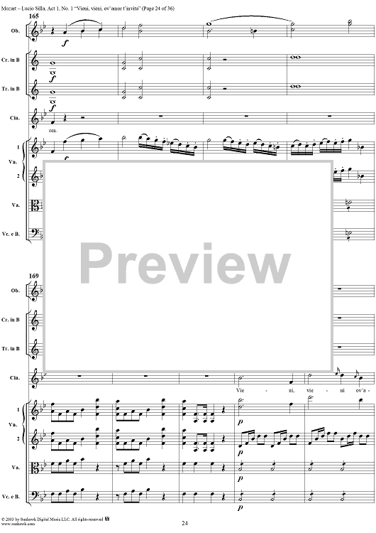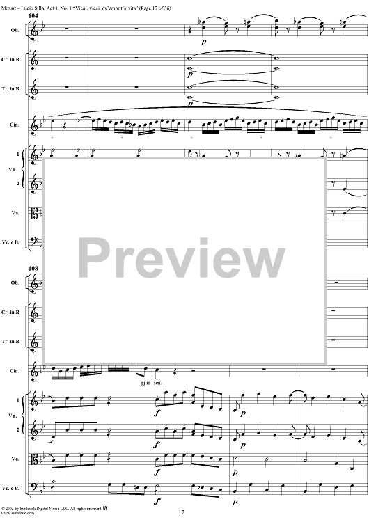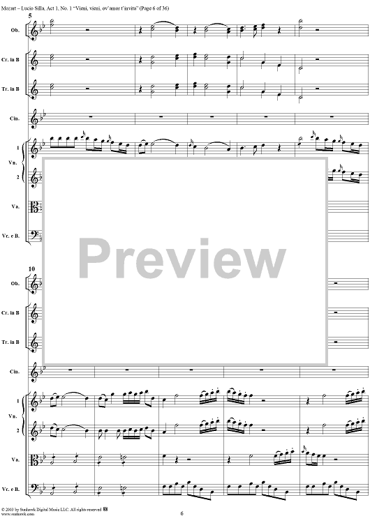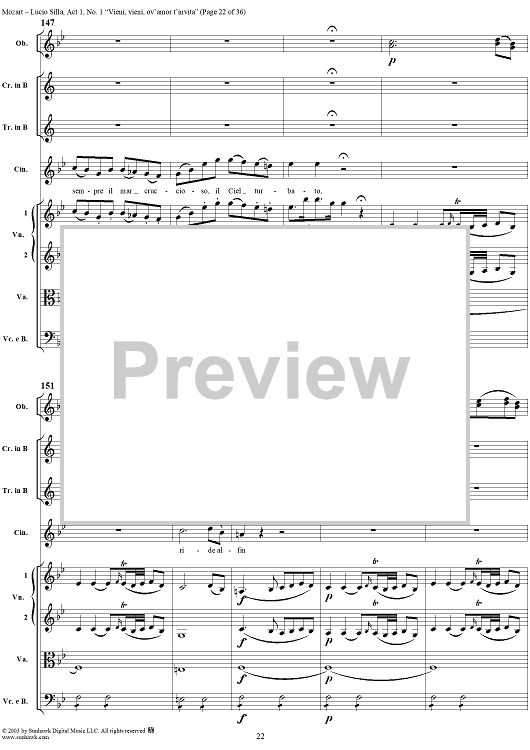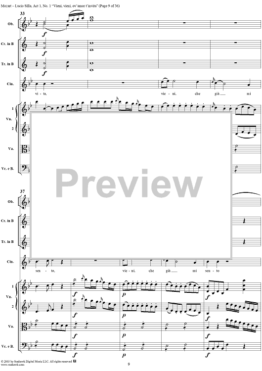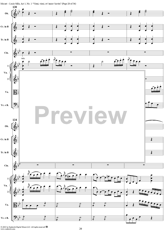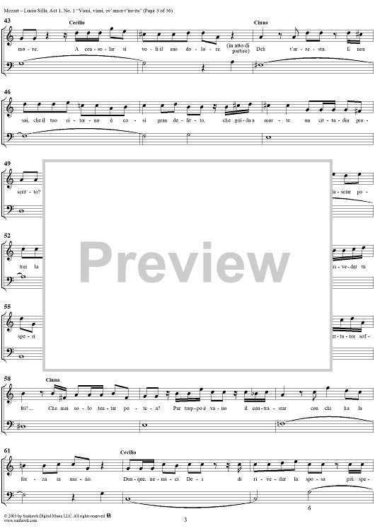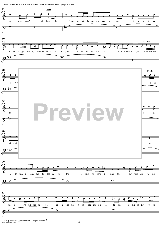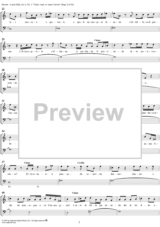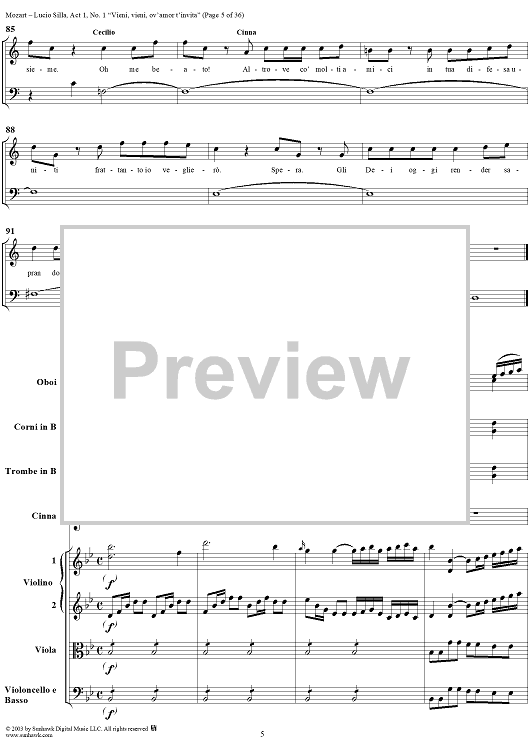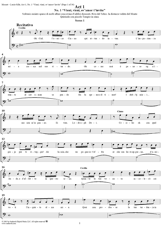 Digital Sheet Music for Recitative and Aria: Vieni, vieni, ov'amor t'invita, No. 1 from "Lucio Silla", Act 1 - Full Score by Wolfgang Amadeus Mozart scored for Soli/SATB/Orchestra; id:291262