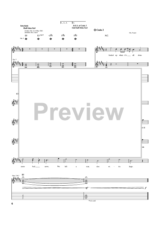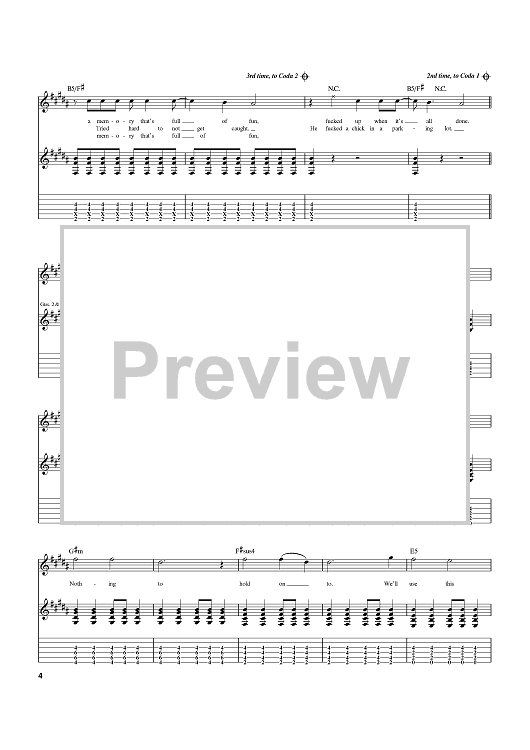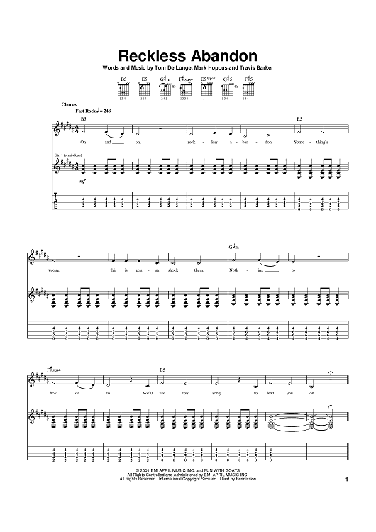 Digital Sheet Music for Reckless Abandon by Travis Barker, Mark Hoppus, blink-182, Tom DeLonge scored for Guitar Tab; id:370608