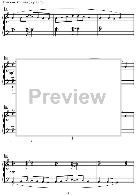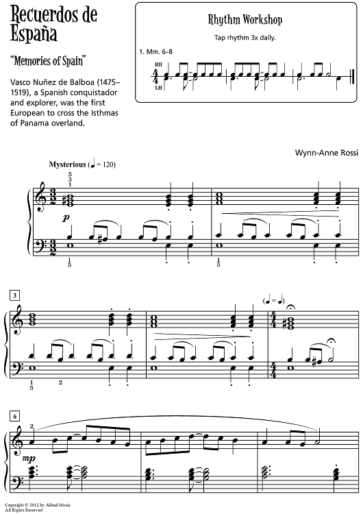 Digital Sheet Music for Recuerdos de España by Wynn-Anne Rossi scored for Piano; id:469515