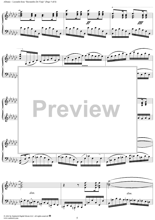 "Recuerdos De Viaje, Op. 71: No. 2, Leyenda, Barcarola in E-flat Major" Sheet Music by Isaac Albéniz