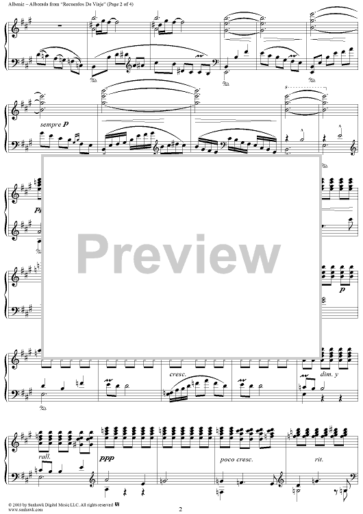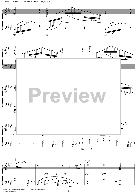 Digital Sheet Music for Recuerdos De Viaje, Op. 71: No. 3, Alborada in A Major by Isaac Albéniz scored for Piano Solo; id:296597
