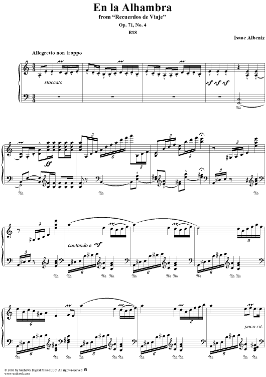 "Recuerdos De Viaje, Op. 71: No. 4, En la Alhambra in A Minor" Sheet Music by Isaac Albéniz