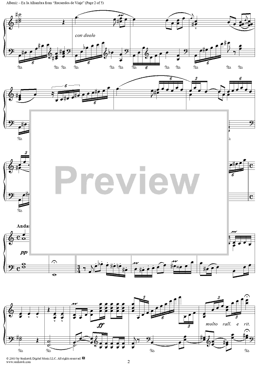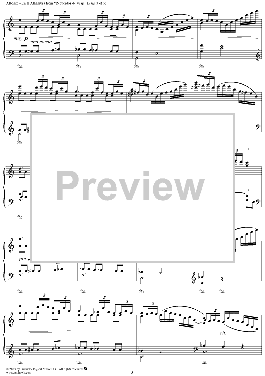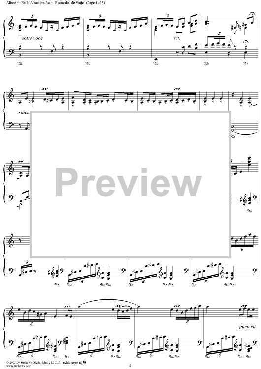 Digital Sheet Music for Recuerdos De Viaje, Op. 71: No. 4, En la Alhambra in A Minor by Isaac Albéniz scored for Piano Solo; id:296598