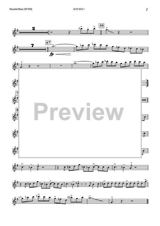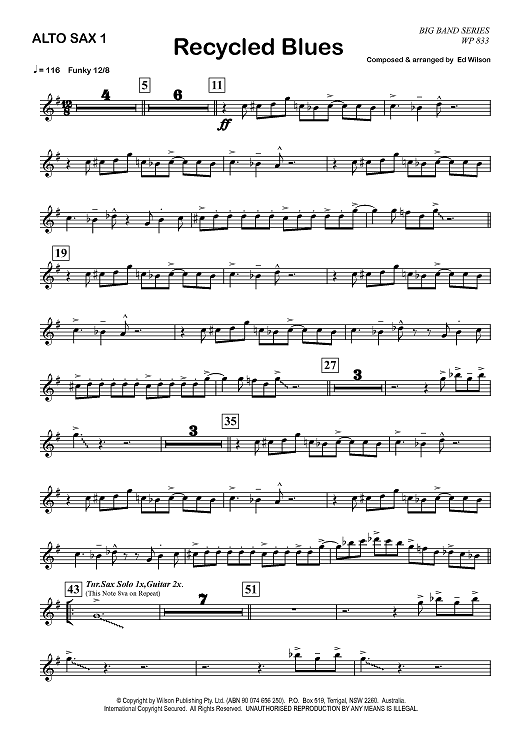 "Recycled Blues - Alto Saxophone 1" Sheet Music by Ed Wilson
