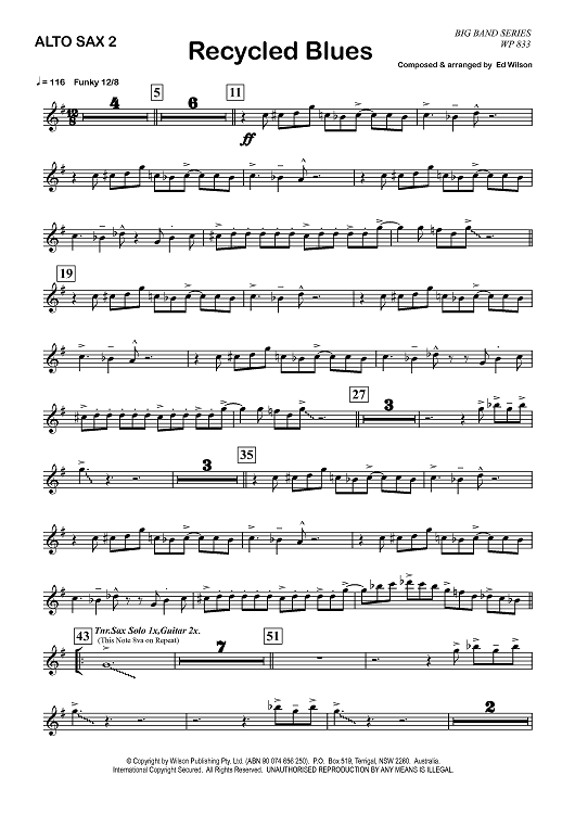 "Recycled Blues - Alto Saxophone 2" Sheet Music by Ed Wilson