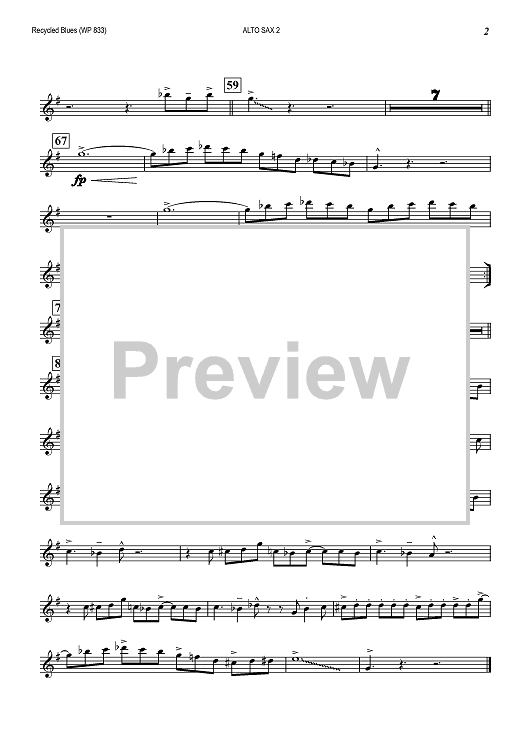Digital Sheet Music for Recycled Blues - Alto Saxophone 2 by Ed Wilson scored for Jazz Ensemble; id:362243