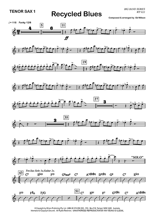 "Recycled Blues - Tenor Saxophone 1" Sheet Music by Ed Wilson