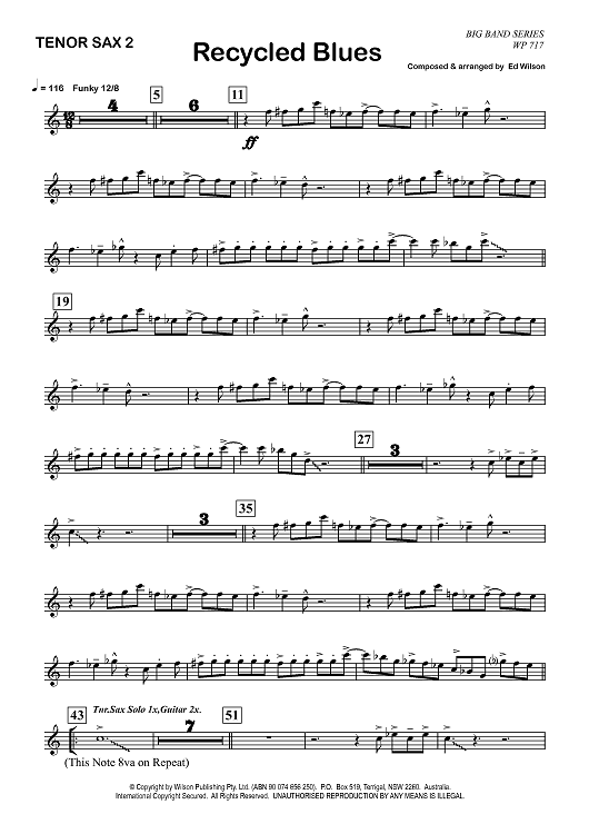 "Recycled Blues - Tenor Saxophone 2" Sheet Music by Ed Wilson