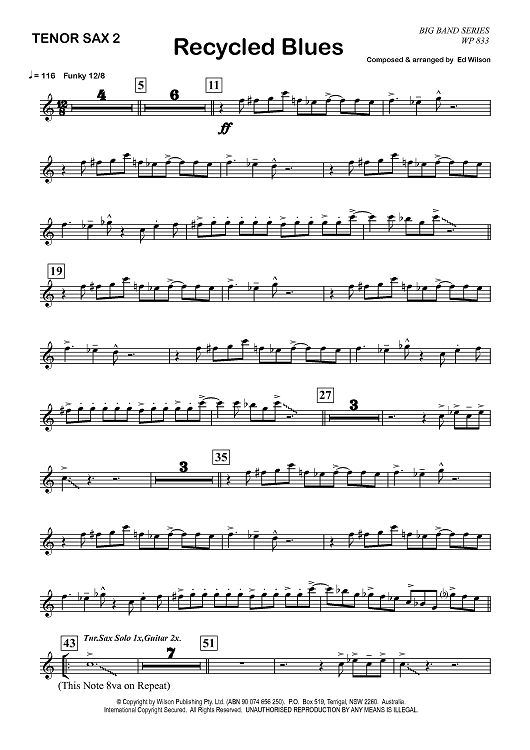 "Recycled Blues - Tenor Saxophone 2" Sheet Music by Ed Wilson