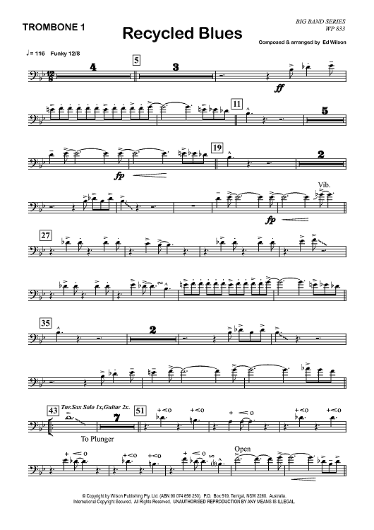 "Recycled Blues - Trombone 1" Sheet Music by Ed Wilson