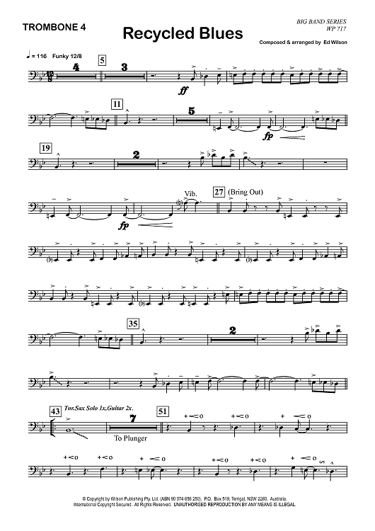 Digital Sheet Music for Recycled Blues - Trombone 4 by Ed Wilson scored for Jazz Ensemble; id:362230