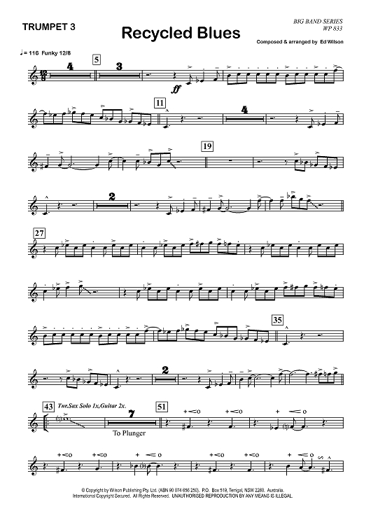"Recycled Blues - Trumpet 3" Sheet Music by Ed Wilson