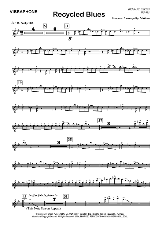 "Recycled Blues - Vibraphone" Sheet Music by Ed Wilson