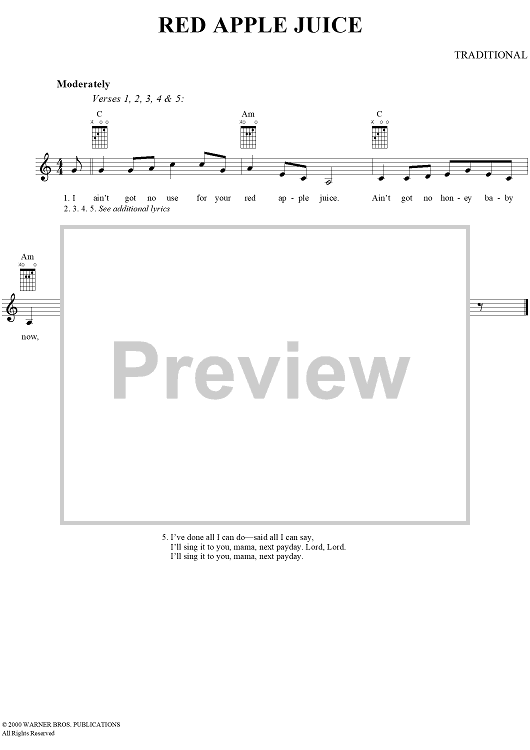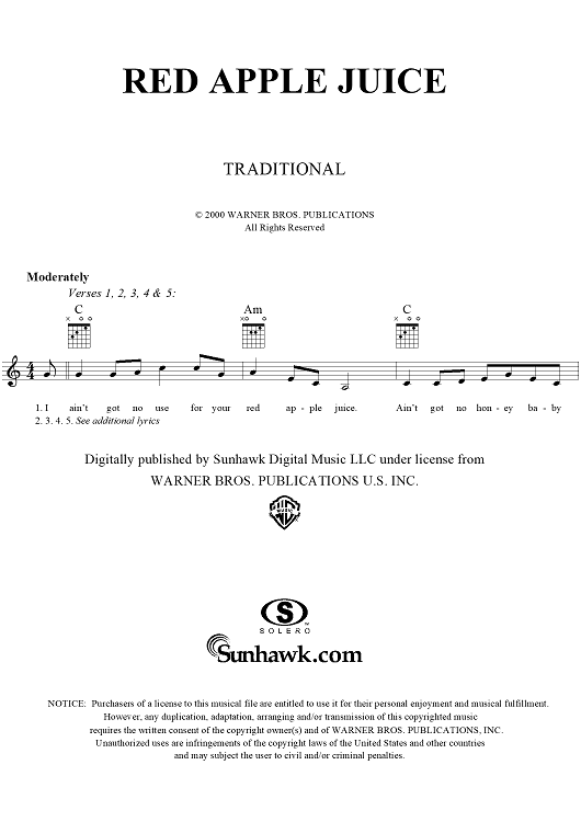 "Red Apple Juice" Sheet Music by Traditional