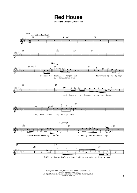 Digital Sheet Music for Red House by Jimi Hendrix, Buddy Miles, Joe Satriani scored for Lead Sheet; id:374321