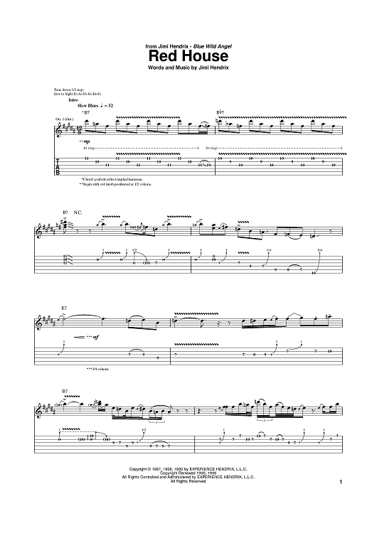 Digital Sheet Music for Red House by Jimi Hendrix scored for Guitar Tab; id:385262