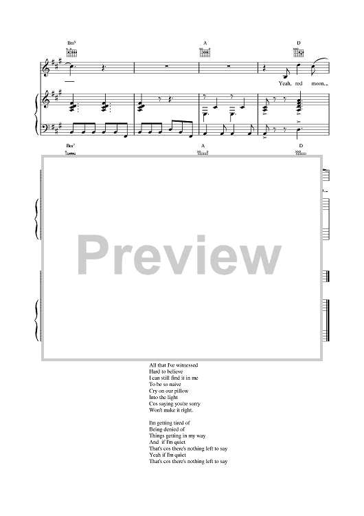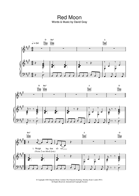 Digital Sheet Music for Red Moon by David Gray scored for Piano/Vocal/Chords; id:380027