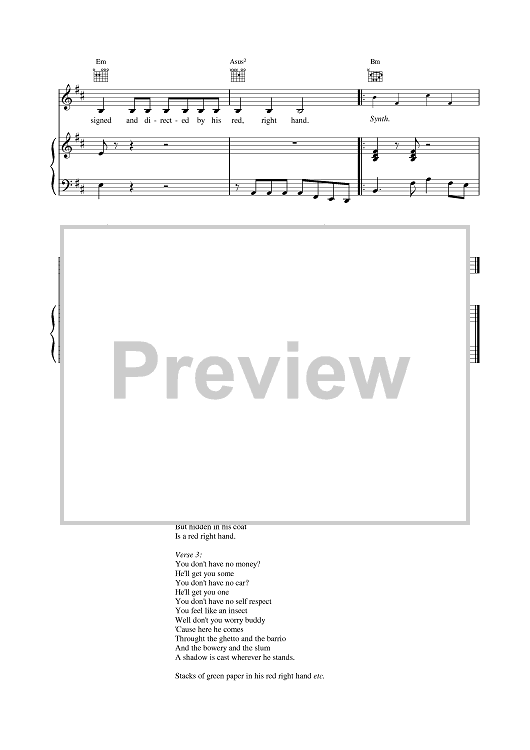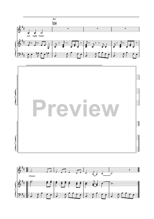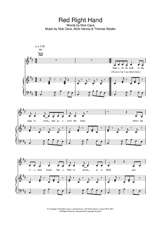Digital Sheet Music for Red Right Hand by Nick Cave, Mick Harvey, Thomas Wydler scored for Piano/Vocal/Chords; id:380080