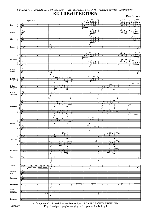 Digital Sheet Music for Red Right Return - Full Score by Dan Adams scored for Concert Band; id:509269