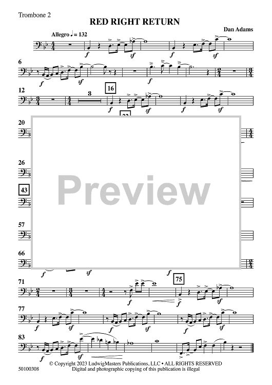 Digital Sheet Music for Red Right Return - Trombone 2 by Dan Adams scored for Concert Band; id:509293
